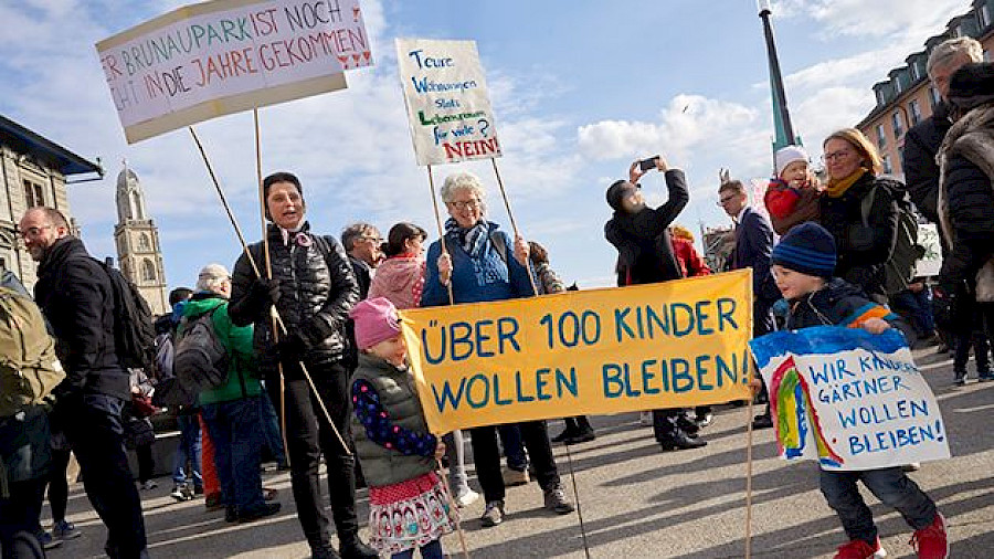 All das haben die Mieterinnen und Mieter des Brunauparks am 15. März 2019 aus einer Antwort des Zürcher Stadtrats an den Gemeinderat herauslesen müssen. Sie haben sofort gehandelt. Sie gründeten den Verein IG Leben im Brunaupark. Und schon am 27. März stand eine bunte Gruppe von Mieterinnen und Mietern vor dem Zürcher Rathaus. Sie forderten, in der Planung des Brunauparks eine Denkpause einzulegen, um über den Erhalt von bezahlbaren Wohnungen und eine Bleibegarantie der Mieterinnen und Mieter diskutieren zu können. Und sie wiederholten den schon eine Woche zuvor von SP, Grünen und AL erhobenen Appell an den Stadtrat, auf die vorzeitige Entlassung von Wohnungen aus der Mietzinskontrolle zu verzichten.