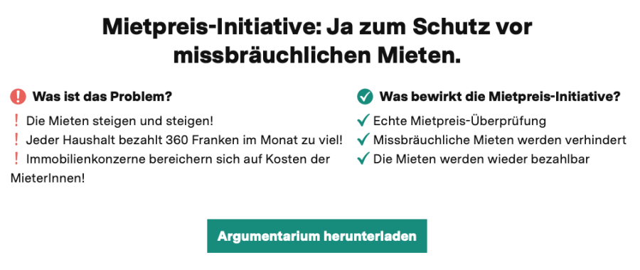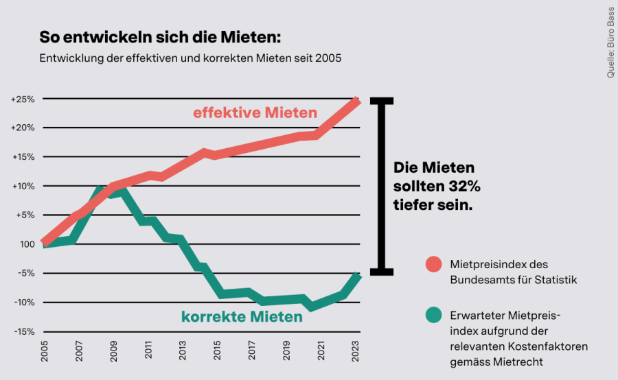 Die Initiative sieht vor, dass endlich eine echte Mietpreis-Überprüfung möglich wird, um missbräuchlich hohe Mieten zu verhindern. Denn die Mieten steigen und steigen, obwohl sie gemäss geltendem Mietrecht in den letzten Jahrzehnten deutlich hätten sinken müssen.
